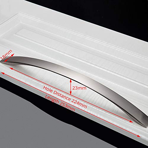 10 maniglie per mobili, cassetti, in acciaio inox, moderne, in lega di alluminio, colore argento (224 mm, argento)