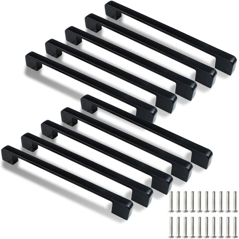 Confezione da 10 maniglie nere, ciascuna lunga 200 mm, distanza tra i fori 192 mm, altezza 17 mm, viti incluse. -Le nostre maniglie sono realizzate in lega di alluminio di alta qualità per una maggiore durata. -Le maniglie in stile moderno si adattano facilmente a diversi stili di arredamento. -Perfetto per armadi, cassettiere, cassetti e altro per dare ai tuoi mobili un nuovo look.
