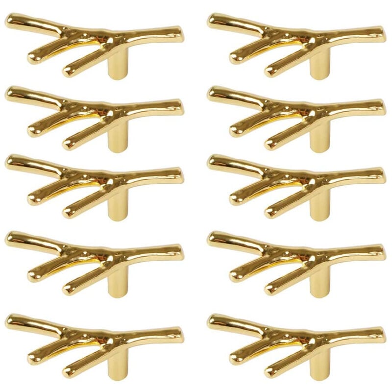 •Un set di 10 maniglie dorate per cassetti, ciascuna misura 68 x 37 x 24 mm con viti incluse. •Realizzato in lega di zinco di alta qualità, è resistente, antiruggine e durevole. •Questi tiranti hanno un aspetto unico del ramo che darà ai tuoi mobili un nuovo aspetto. •Adatto per cassetti, armadi, credenze, librerie e altri mobili.