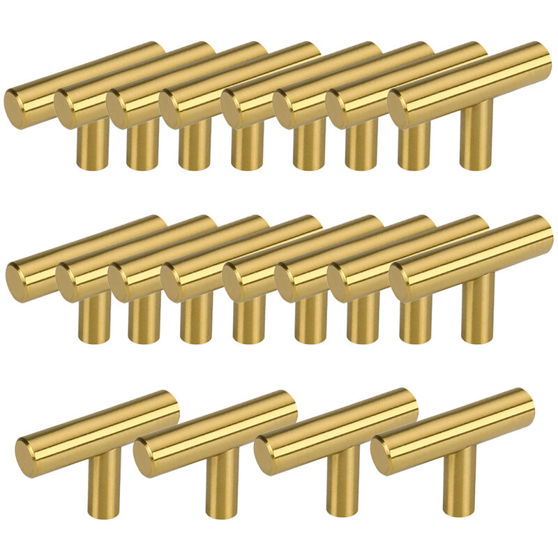 Set di 20 maniglie per cassetti dorate, ciascuna di 50 mm di lunghezza, 32 mm di altezza e 12 mm di diametro, con viti incluse. Le nostre maniglie sono realizzate in acciaio inossidabile di alta qualità con una superficie spazzolata per una maggiore durata. Il design semplice gli conferisce un aspetto chic e le linee piccole ed eleganti rendono i tuoi mobili molto chic. Questa maniglia è adatta a tutti i mobili in camera da letto, bagno, cucina, soggiorno, dona un nuovo look ai tuoi mobili. Preforato per mantenere l'integrità della superficie, anche gli inesperti possono installare facilmente....