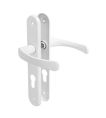 ADGO Set di Maniglie per Porta per Intarsio 60 mm Pan di Spagna, Manico in Alluminio, Rosetta in Acciaio Zincato a Polvere, Sinistra e Destra + Perno 8 x 8 mm + Set di Viti di Montaggio, Bianco