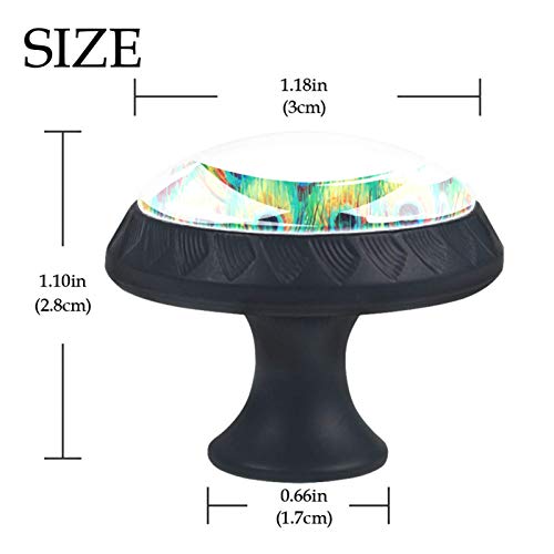 Maniglie per Porta Piuma di pavone verde Pomelli per Mobili Bambini 4 Pezzi Maniglia per mobili Cristallo Maniglia del cassetto per armadi cassetti mobili Porte 3.5×2.8CM