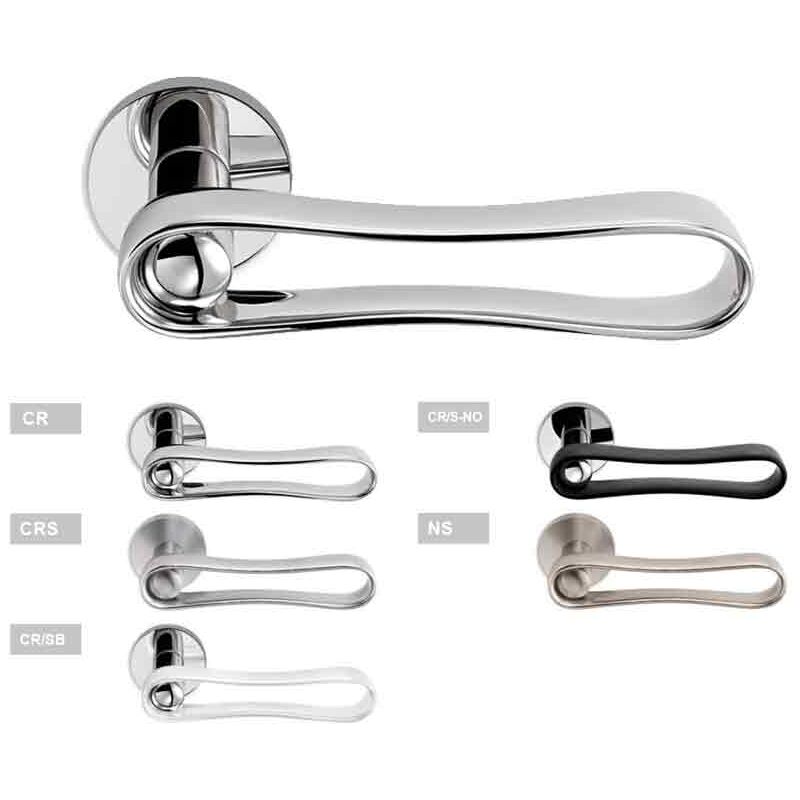 Maniglie porte interne Infinito R6 Ento ETERNO, LA MANIGLIA TRASPARENTE PER PORTA L'essenza della leggerezza. Eterno si presenta come un sottile e sinuoso nastro che fluttua senza peso, offrendo una soluzione estetica e tecnica che consente diverse combinazioni di finiture e svela la superficie della porta in modo sottile. Come per ogni prodotto della gamma, la maniglia trasparente per porta Eterno è realizzata interamente in ottone: il materiale ideale per garantire finiture impeccabili, una resistenza superiore agli agenti chimici e atmosferici, e una solida e sicura presa. Sono disponibili varie opzioni di finitura, tra cui Cromo, Cromo satinato e Nichel satinato in tinta unita, oppure la combinazione di Cromo Lucido con impugnatura in Smalto bianco lucido o Smalto nero opaco. La serie comprende sia la maniglia per porta che la maniglia per finestra, e può essere installata su una rosetta rotonda per una perfetta integrazione estetica. Principali caratteristiche: Finiture