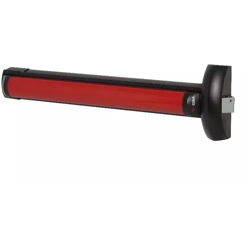 Maniglione antipanico FAST TOUCH da applicare con scrocco laterale autobloccante ( 1 punto di chiusura ). Carter in alluminio vernciato nero. Barra in acciaio verniciato rosso per luce mm.840 accorciabile fino a 300mm. Non incluso il comando esterno.