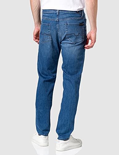 7 For All Mankind Slimmy Tapered Luxe Performance Eco Blue Jeans, Mid Blu, 28W X 30L Uomo