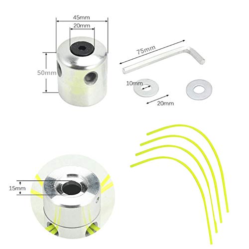 Dimensione generale: La dimensione di testa di erba alluminio testina decespugliatore è: 45 x 50mm, il diametro del filo è 2.4mm, la dimensione si adatta perfettamente e non è facile cadere. Il filo di nylon è facile da sostituire, il che semplifica notevolmente il tuo lavoro.