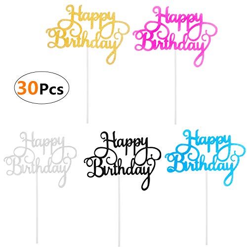 Mannli 30 Pezzi Topper per Torte Compleanno Scelta di Cupcake Buon Compleanno per Festa Decorazione