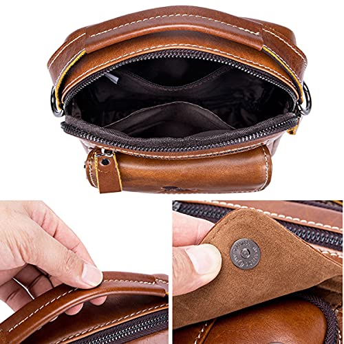 MANNUOSI Uomo Borse A Spalla Borsa messenger portatile in vera pelle Borsa a tracolla multifunzionale retrò casual Marrone chiaro