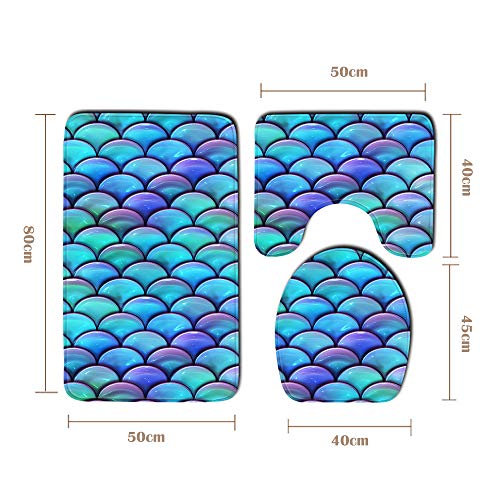 MANNUOSI Nuovo Tappetini per Il Bagno Morbido Scala di Pesce 3 Pezzi Set Contour rug igienici Coperchio Coperchio e Vasca da Bagno Mat