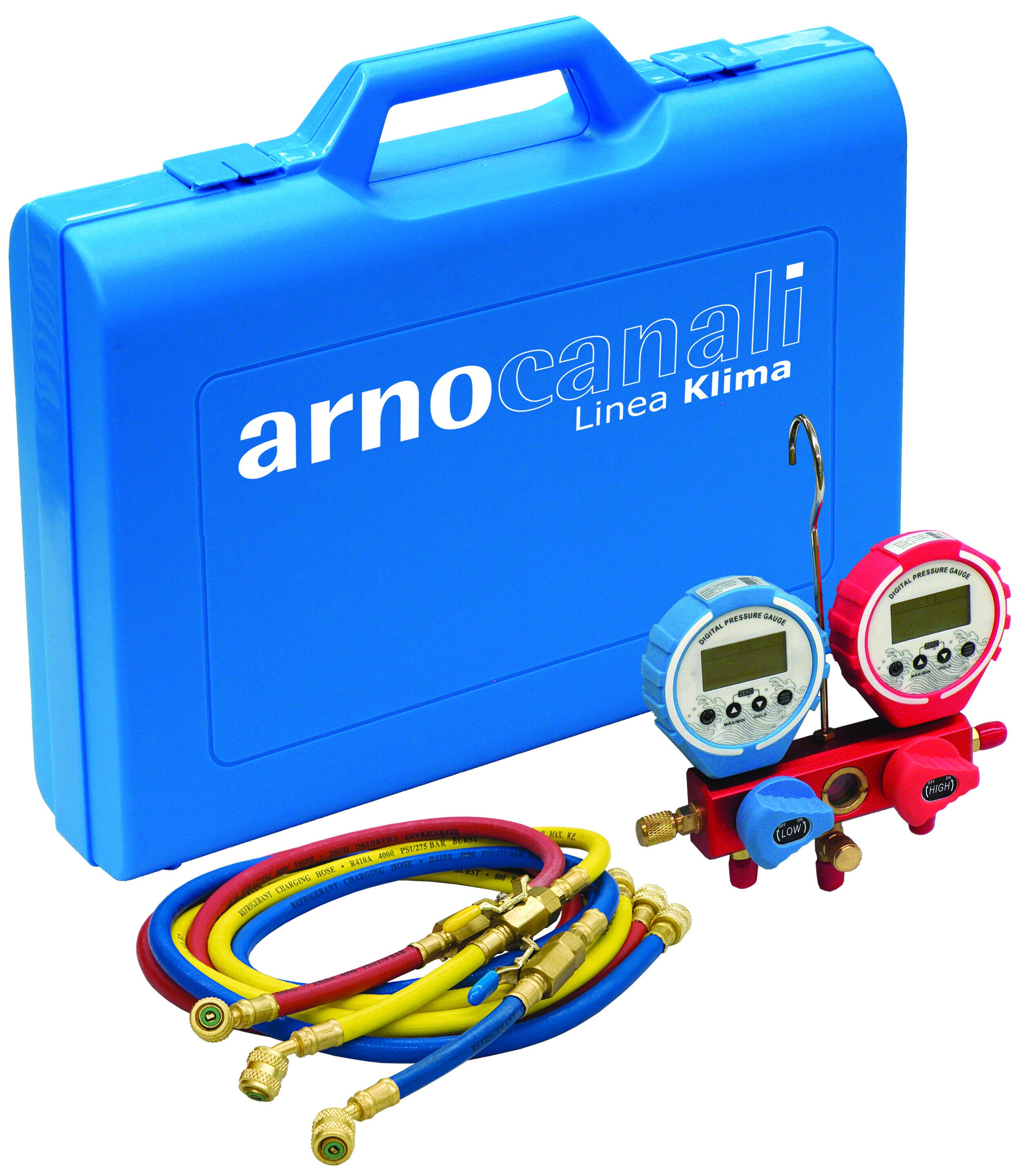 Manomentro per compressore, 4 vie in alluminio. Per tutti i tipi di gas