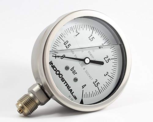 MANOMETRO INDOOSTRAL | TUTTO IN ACCIAIO INOSSIDABILE, CLASSE 1, QUADRANTE 100 MM, 0 + 4 BAR, FILETTO G1 / 2 "ATTACCO INFERIORE, GLICERINA | INOX100_INF_G1 / 2_GLI_0-4 BAR