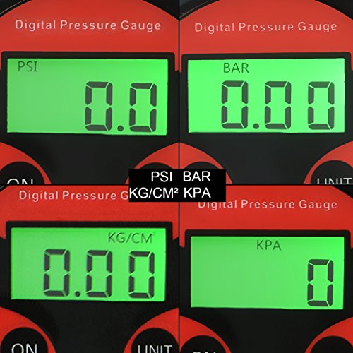Facile da usare, con una chiave una sola per accendere o off.Besides, si può passare tra modalità: quattro PSI, BAR, KPA Kb/cm.