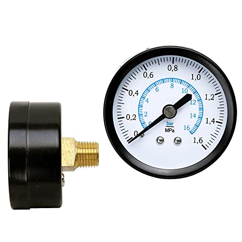 Manometro professionale 1/4" 230 PSI 0-16bar 50mm Compressore Aria Compressa Misuratore a Doppia Scala