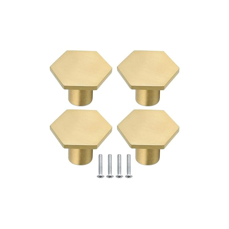 Materiale robusto: le manopole dell'armadio sono realizzate in rame massiccio e la superficie è sigillata con smalto ad alta temperatura, che è molto liscia. Elevata durezza, buona resistenza all'ossidazione, non è facile cambiare colore. Design geometrico - Le manopole dell'armadio sono progettate in una forma geometrica esagonale con spigoli vivi e angoli per un aspetto elegante.pulite e lisce con una lucentezza metallica . Può essere abbinato bene con una varietà di stili di decorazione di mobili diversi. IMBALLATO PERFETTAMENTE - Riceverai 4 maniglie per cassetti in ottone massiccio e 4 viti di montaggio. Si consiglia di installare su tavole di legno con uno spessore da 14 mm a 20 mm. Diametro impugnatura 22 mm, altezza 18 mm;
