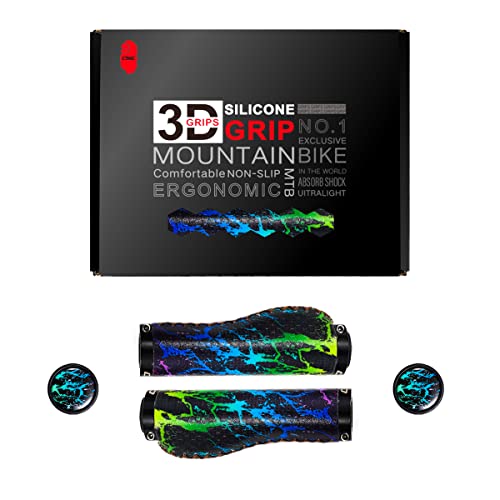 CNC Manopole Bici MTB,Manopole Bicicletta Ergonomiche,Manopole Mtb Silicone per Bicicletta/BMX/Mountain Bike con Doppio Serratura.
