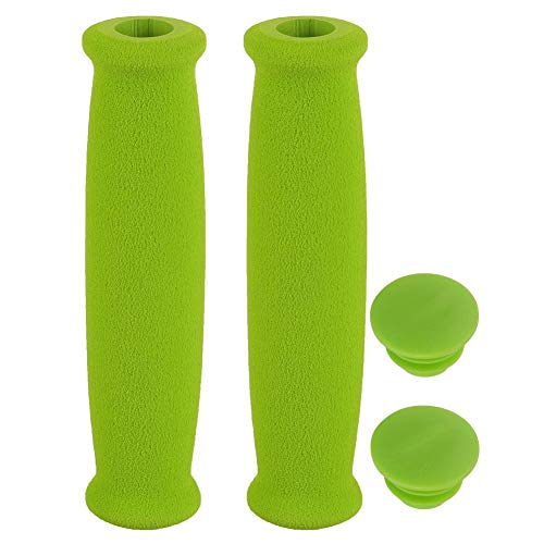 Manopole per bici, Copri manubrio Manopole morbide con manico in spugna Maniglia antiscivolo con tappi terminali per Mountain Road Bike( verde)