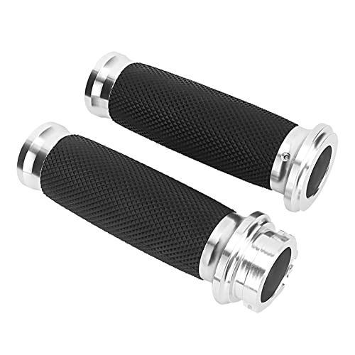 Manopole Moto Custom 25Mm + Manopole Universali per Manubrio da Moto da 25 Mm 1 Paio Manopole Antiscivolo In Alluminio + Manubrio In Gomma Manopola da Corsa(Argento) Auto