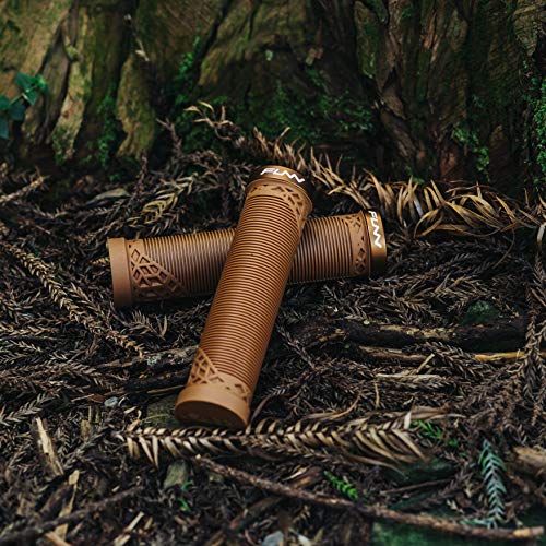 Funn Hilt Manopole per Mountain Bike con sistema di bloccaggio semplice, leggere ed ergonomiche, con un diametro interno di 22 mm, manopole uniche per manubrio con motivo (Marrone)
