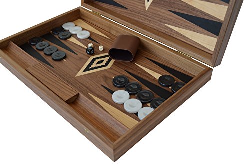 Questo un bellissimo set backgammon da 19" fatto a mano da esperti artigiani Manopoulos utilizzando legno di noce. La combinazione di alta qualità e buoni prezzi ha reso Manopoulos azienda in tutto il mondo conosciuta per i loro prodotti. Non aspettatevi "perfezione" come se questo set backgammon fosse prodotto in massa da una macchina come molti sono, ma piuttosto, un pezzo d'arte unico.
