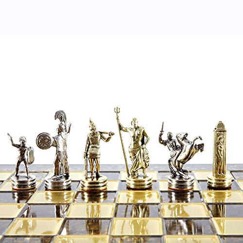 Manopoulos Greek Mythology Chess Set - Brass&Nickel - Brown Chess Board