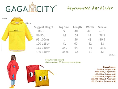 Gaga city Mantella Pioggia Dinosauro Poncho Impermeabile Bambini Unisex con Custodia Portatile Rosso S/80-90cm