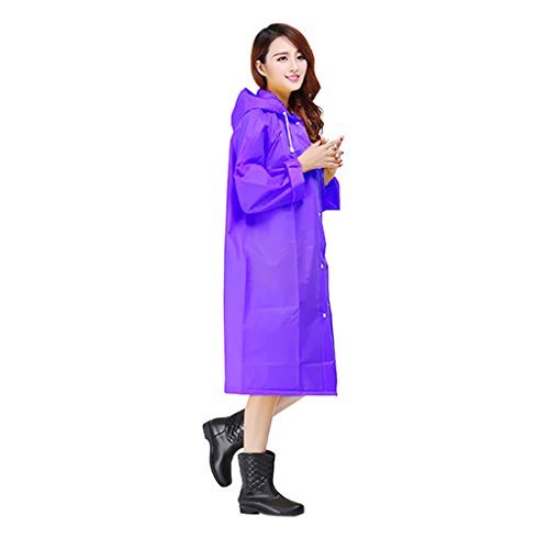Mantella da pioggia da donna, impermeabile, in EVA ecologico, con cappuccio e maniche, lunghezza sopra al ginocchio, spessa, per adulto, Violet- XL