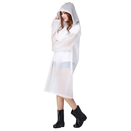 Mantella da pioggia da donna, impermeabile, in EVA ecologico, con cappuccio e maniche, lunghezza sopra al ginocchio, spessa, per adulto, Blanc- XL