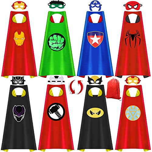 Mantelle da supereroe per bambini, 13 cappe da supereroi su entrambi i lati, maschere per bambini giocattoli per costumi da 3, 4, 5, 6, 7, 8, 9, 10 anni, regali per Halloween, Natale, feste di