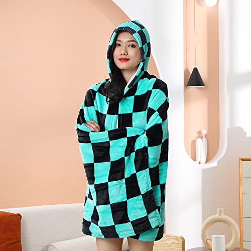Mantello con cappuccio per anime Kamado Tanjiro Cosplay Costume Cape Coperta Kimetsu no Yaiba con cappuccio Mantello coperta per bambini adulti