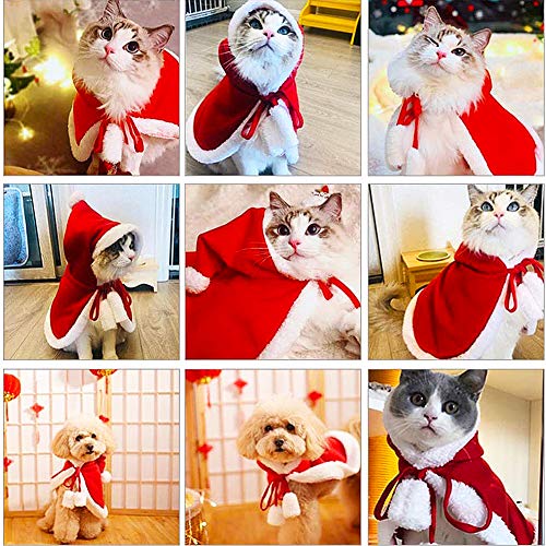LLMZ Mantello per Gatti Regolabile Vestito Natalizio con Cappello Cat Costume di Natale per Cucciolo Gattino Piccoli Gatti Cani Animali Domestici Vestito da Festa (S)