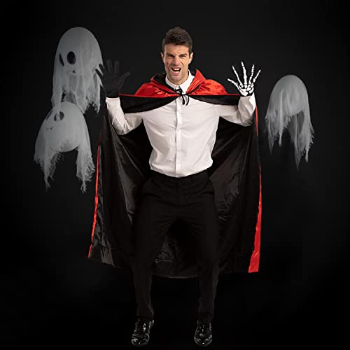 Mantello Halloween con Cappuccio vampiro Costume Adulti, Nero Rosso Mantello Vampiro con Scheletro Guanti per Festa in Costume, Doppia Faccia Mantelli Cappuccio per Halloween Carnival Cosplay Festa