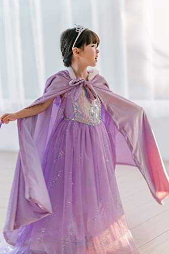 Mantello lungo lungo in velluto con cappuccio per bambine principessa Elsa Belle Aurora Sofia, Viola (Viola), 4-5 anni
