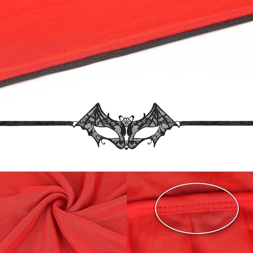 Mantello doppio lato + maschera per gli occhi, un lato nero, l'altro lato è rosso, il mantello è adatto per Halloween, carnevale, cosplay, ecc.