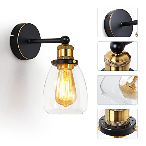 MantoLite 1 Lampade Bagno Luci Da Parete Specchio, Industriale Lampada Da Applique Nero e Bronzo Interni Illuminazioni Retrò Faretti da Muro con Vetro Trasparente Lampade da Lttura Parete Soggiorno