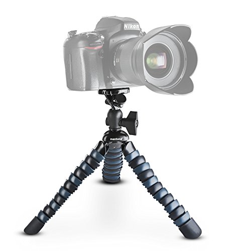 Mantona Armadillo DSLR flexibles Mini Kamera und Tisch Stativ für Kamera Smartphone Actioncam, Traglast 3 kg, Höhe 28 cm, mit Kugelkopf, inkl. Smartphone Halter und GoPro Adapter, schwarz/grau, 21449