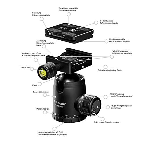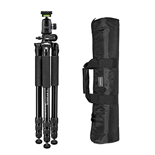 Mantona Kodiak L 284 F10 - Treppiede per foto in alluminio, regolabile a 3 livelli, stabile e versatile, con testa a sfera Arca, altezza da 8 a 176 cm, borsa