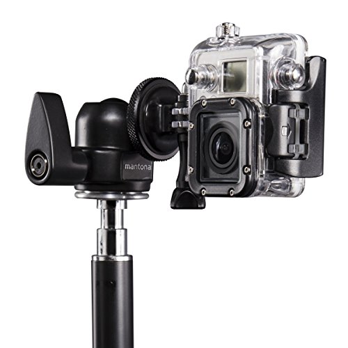Mantona Treppiede Airview per GoPro 3.55 con treppiede per lampada 600 cm, testa a sfera con adattatore per treppiede, nero