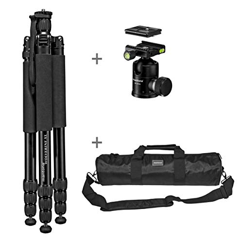 Mantona Wolverine Xl-12 - Treppiede Professionale Con Testa A Sfera In Alluminio, Carico 12 Kg, Altezza Da 8 A 195 Cm, Monopiede 205 Cm