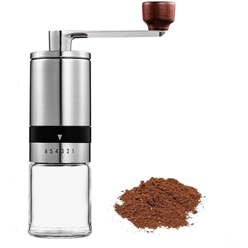 Manual Coffee Grinders Ceramic Burr Grinder Hand Coffee Grinder with 6 Adjustable Settings Portable Steel Coffee Grinder