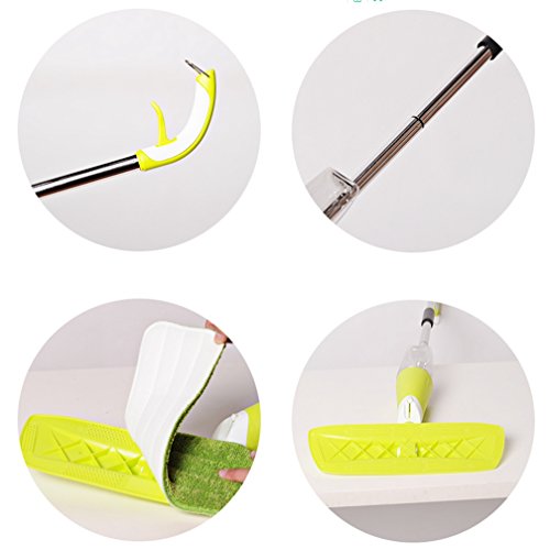 *[Facile da usare] Solo 3 connessioni cliccando La connessione è un po 'stretto quindi ha bisogno di un po 'di forza per spingere. Una volta fatto, è pronto ad andare. Metti l'acqua nella bottiglia, attacca il panno in microfibra nella parte inferiore, spremi il manico, gli spruzzi d'acqua escono dal fondo e davanti al mocio, poi fai rotolare il mocio per pulire l'area.