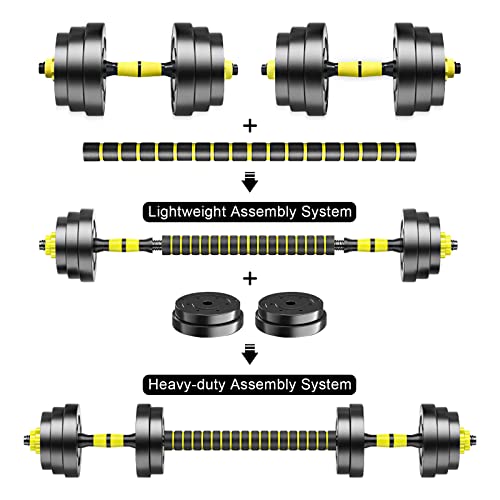 Set di pesi multiuso: offre diverse opzioni di peso e transizioni rapide tra manubri corti e bilancieri. I set di manubri sono più di semplici manubri lunghi e corti. Come una palestra domestica. Peso regolabile, adatto per l'allenamento muscolare per tutti i tipi di persone. Facile da smontare e assemblare. Non arrugginisce, non danneggia il pavimento.