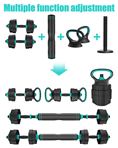 【Il Pacchetto Include】: 4 piastre da 1,25 kg, 4 piastre da 1 kg, 4 dadi, 2 barre di installazione, 1 tubo di collegamento, 2 maniglie per flessioni, 1 base per kettlebell. (Puoi collegare 2 manubri a 1 bilanciere tramite un collegamento asta velocemente.)