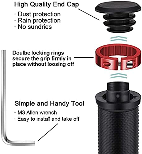 Antiscivolo e doppio blocco: questa impugnatura del manubrio utilizza materiale in gomma che ha una forte funzione antiscivolo. Non è facile scivolare nel giorno di pioggia. E le dita possono rilassarsi dal ciclismo a lunga distanza. C'è un doppio blocco laterale che può darti doppia protezione e sicurezza.