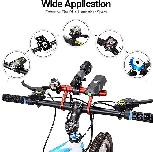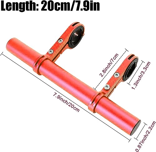 Manubrio Extender Bici, 20cm Supporto per Manubrio Bicicletta, Estensione da Manubrio con Doppie Morsett, Lega di Alluminio Estensore Supporto Per GPS, Tachimetro, Torcia, Telefono Supporto (Rosso)