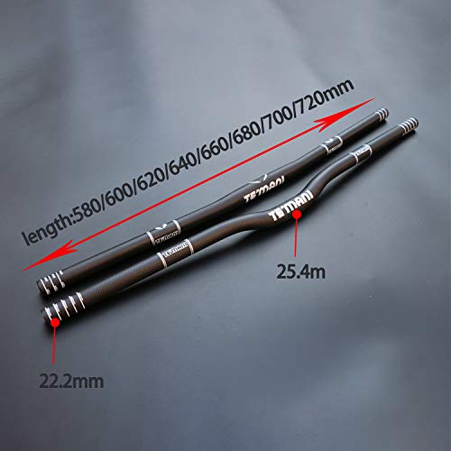 GRTE Manubrio in Fibra di Carbonio per Mountain Bike Manubrio Piatto/Piatto MTB Riser Bar Mountain Bike e Bici da Strada Matte Ultralight Lightweight 25.4mm 580mm - 720mm,B,720mm