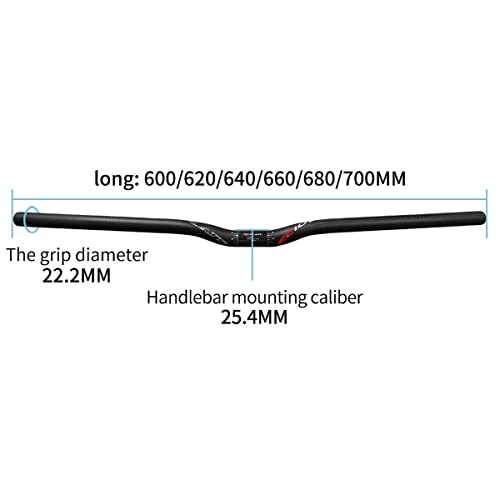 Manubrio MTB 25.4mm Manubri Mountain Bike Carbonio 580/600/620/640/660/680/700/720mm Bicicletta Manubrio Riser Bar (Color: Black, Size: 580mm)