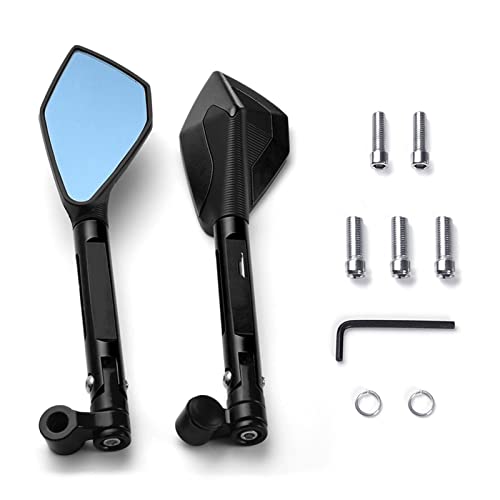 Materiale: specchietto retrovisore per moto realizzato in alluminio CNC e vetro.Alta definizione, antiriflesso, antideflagrante, non sbiadisce, molto resistente.