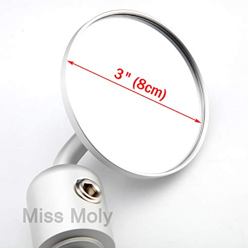 7/8" 22mm Manubrio Moto Specchio 3 Pollici Specchietto Retrovisore Rotondi per Scooter Chopper Cruiser(Argento)