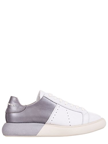 Manuel Barcelo' Sneakers Donna, in Pelle, Bianco/Argento (40)
