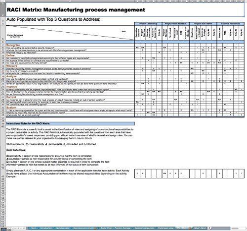 Gives you a professional Dashboard to guide and perform a thorough Manufacturing process management Self-Assessment. Versatile;